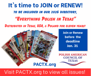 - A complimentary ad in our annual Polish American Council of Texas Directory, distributed in Texas, the USA, and Poland — and on our website.